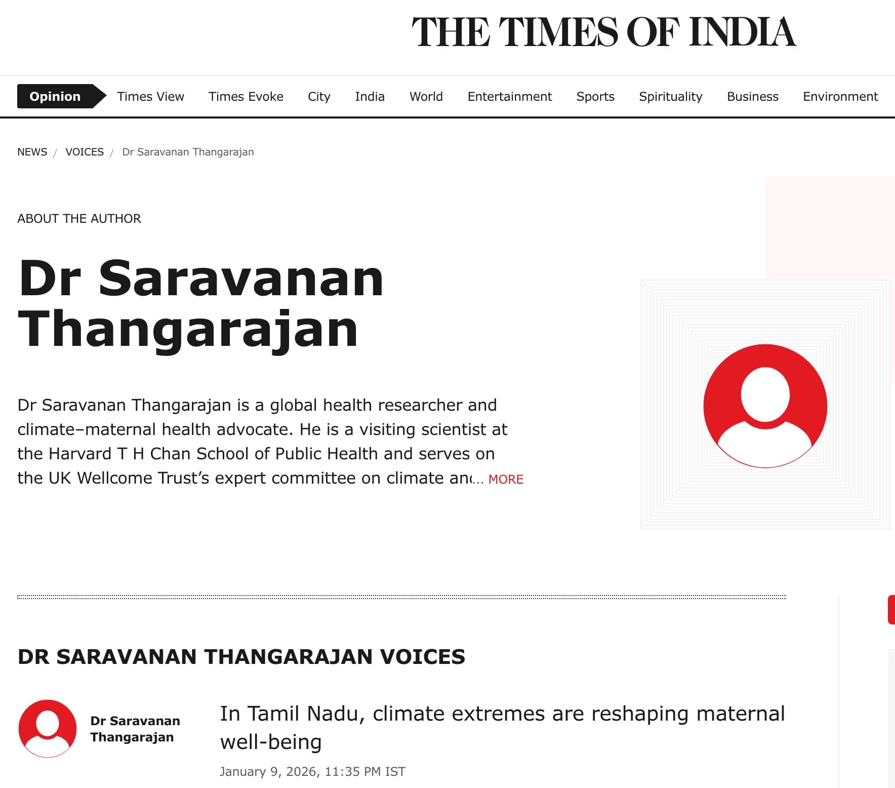 Dr. Saravanan Thangarajan is a global climate, health, and equity governance advisor focused on how heat, air pollution, and resource insecurity shape health outcomes in climate vulnerable settings. His work connects policy, financing, and frontline service delivery, with a strong emphasis on maternal health, mental health, and community resilience. Trained in dentistry, health administration, and global health delivery, he brings operational and systems experience across public health programs and digital health infrastructure. He provides clear, quote ready insights on climate adaptation for health systems, equity centered governance, and implementation pathways that move evidence into action.