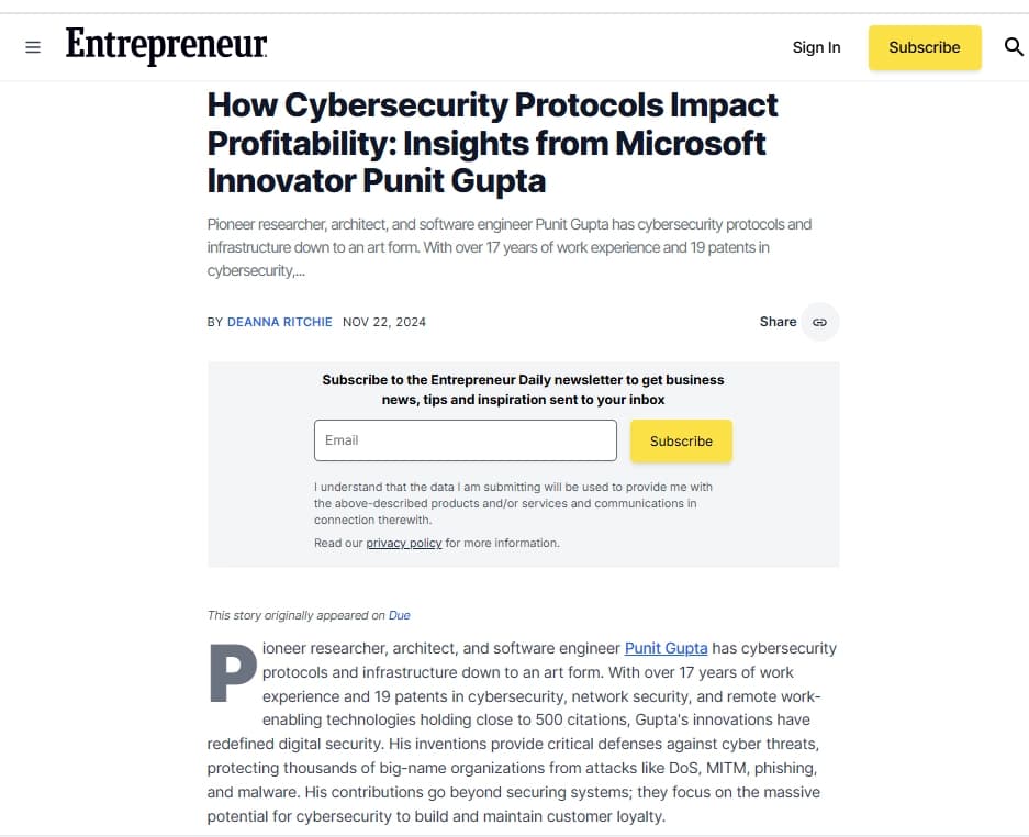 Principal Software Architect - Cybersecurity & Remote Work Enabling Technologies @Microsoft | Ex-Meta | Ex-Citrix | Innovator with 19 Patents Worldwide | Featured in USA Today, Entrepreneur, Nasdaq | SMIEEE | Mentor | Speaker