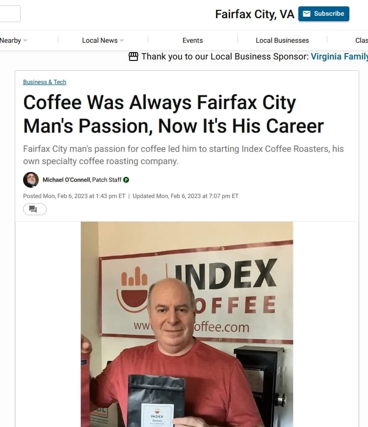 Founder & Head Roaster at Index Coffee, award-winning specialty coffee roaster based in Fairfax, VA. Specializing in single origin coffees with distinct natural flavors, fairly traded and sustainably grown. Helping to brew your best cup at home.