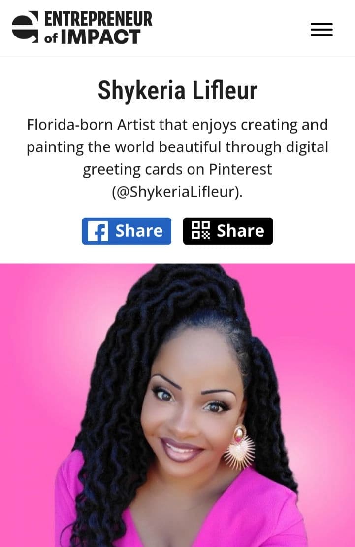 Founder & CEO of Simply Shykeria, a viral greeting card brand with 31 Million Pinterest views. Entrepreneur of Impact Nominee, blending Corporate HR expertise with creative designs to spread joy and connection. Explore at payhip.com/simplyshykeria.