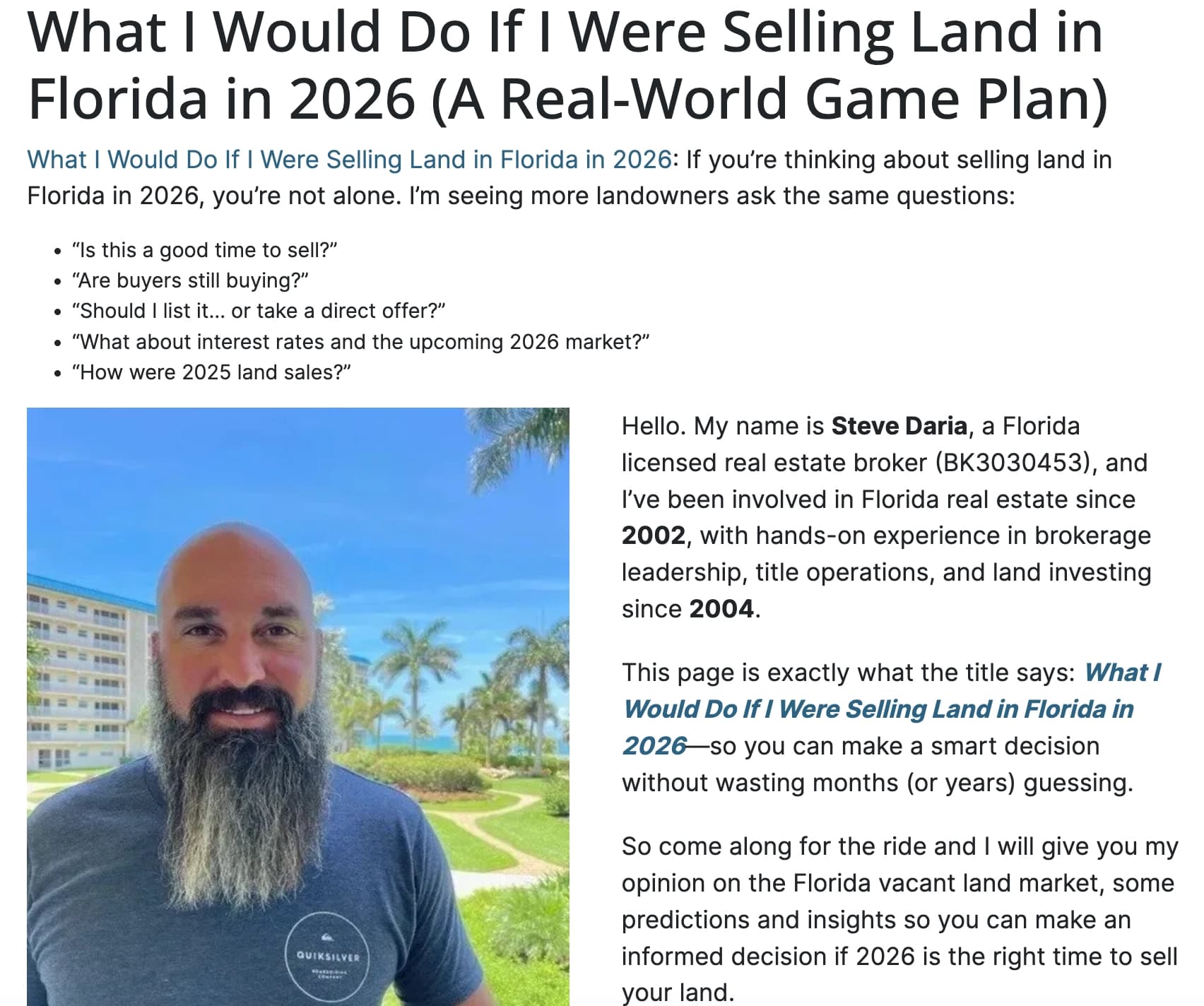 We are Florida land experts. Licensed real estate brokers and land buyers in the state of Florida. We have been buying, selling and helping others sell their land in Florida for over 20 years. Over 400+ families have trusted us to buy their land.